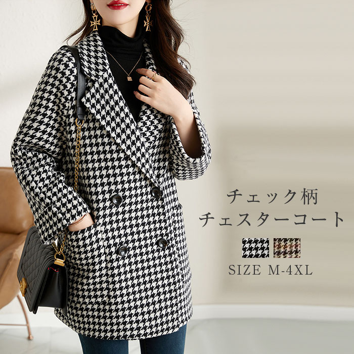 テーラードジャケット チェック柄 チェスターコート ジャケット 千鳥格子 レディース 春 秋 コート 中綿 アウター 羽織 トップス とろみコート 着回し力 レディース 着痩せ 体型カバー