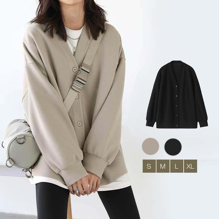 スウェット カーディガン 秋 冬 春 レディース トップス ジャケット アウター 秋 冬 長袖 羽織り 大人 ゆったり 体型カバー シンプル カジュアル 柔らかい モード トレンド感 着回し