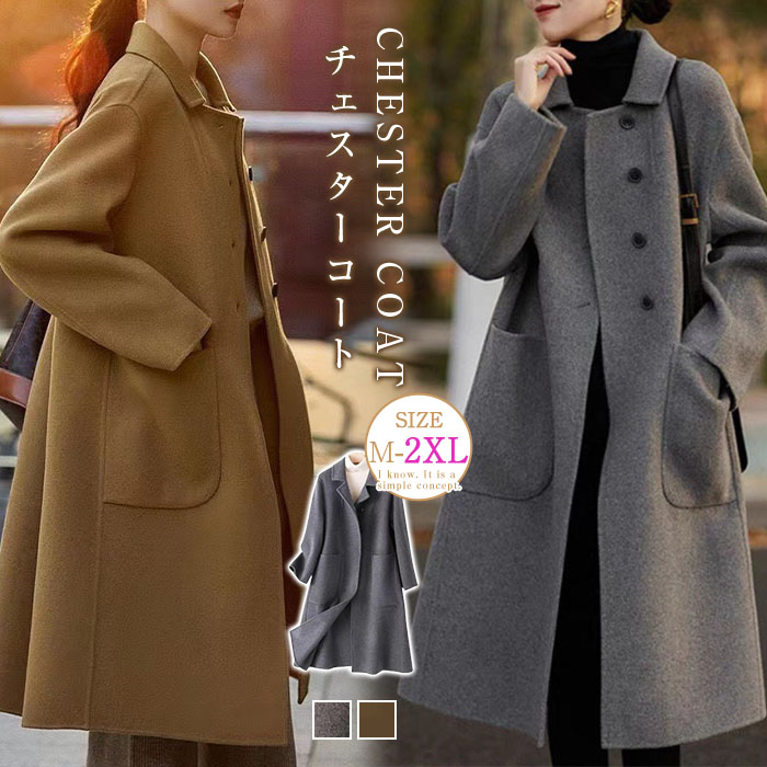 チェスターコート ロング丈 トレンチコート レディース 秋 冬 無地 ラシャ コート アウター 着痩せ お洒落 大人 体型カバー 通勤 体型カバー ゆったり シンプル カジュアル 着痩せ 通勤