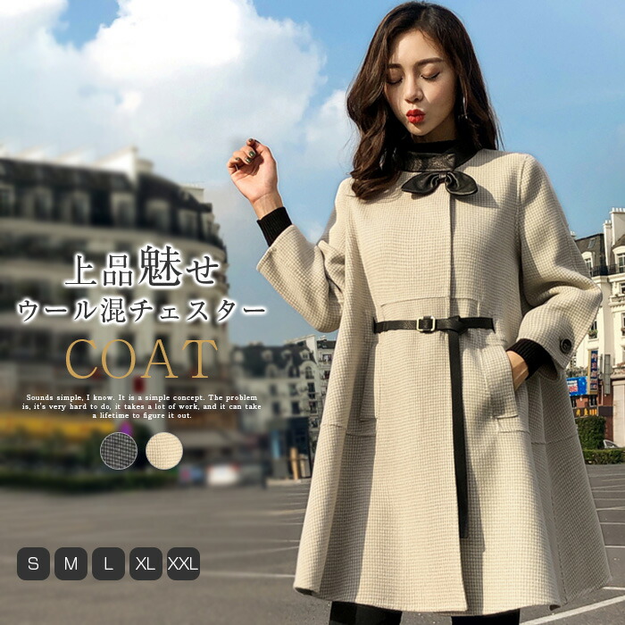 コート ノーカラー レディース チェスターコート チェック柄 秋 冬 コート トレンチコート ウール混 ジャケット アウター あったか 暖かい 柔らかい オーバーサイズ ゆったり 秋冬