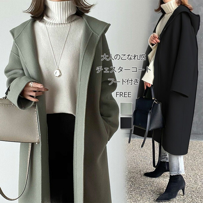 チエスターコー ト レディース レンチコート フード付き ロング コート コート 羽織 アウター 秋 冬 コート ウール混 エレガント カジュアル 無地 体型カバー 暖かい ゆったり シンプル