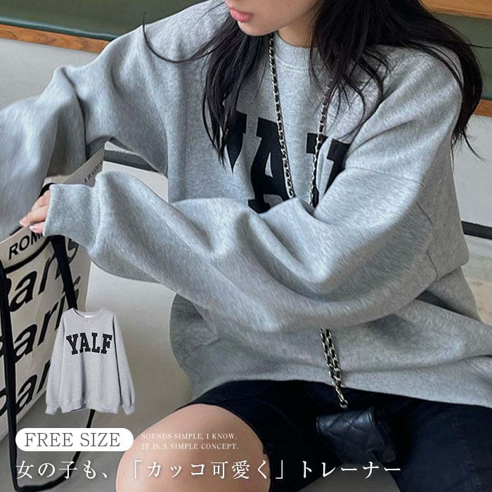 トレーナー レディース 秋 春 長袖 裏起毛 カレッジ ロゴ スウェット カットソー シャツ 長袖 大きめ ゆったり トップス 重ね着 レイヤード風 体型カバー シンプル カジュアル