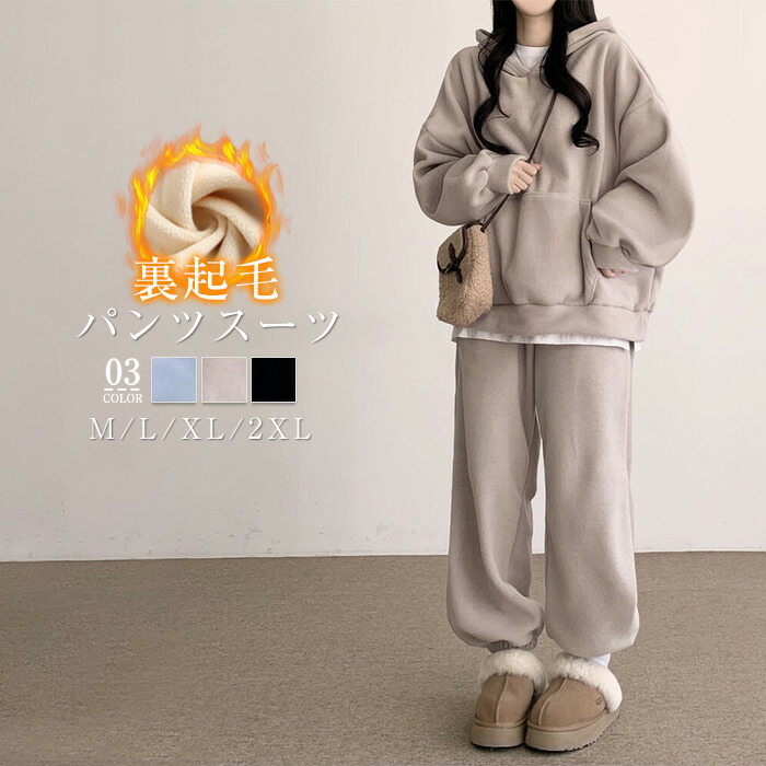 2点セット セットアップ パーカー パンツ レディース 裏起毛 ポケット付き パーカー フード付き ワイドパンツ トップス 長袖 春 秋 冬 レディース 暖かい あったか