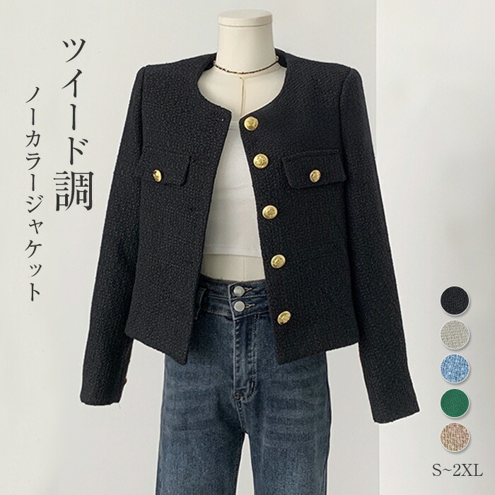 ツイード ジャケット ノーカラー レディース 春 秋 スーツジャケット ショート丈 ノーカラー フォーマル ツイード スーツ カーディガン ノーカラー 体型カバー シンプル カジュアル