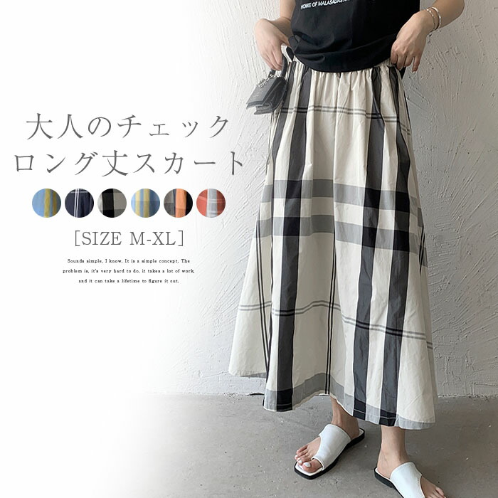 スカート ロング丈 春 秋 夏 フレアスカート Aライン チェック レディース ロングスカート かわいい ウエストゴム 体型カバー おしゃれ ゆったり カジュアル ナチュラル 着痩せ ボトムス