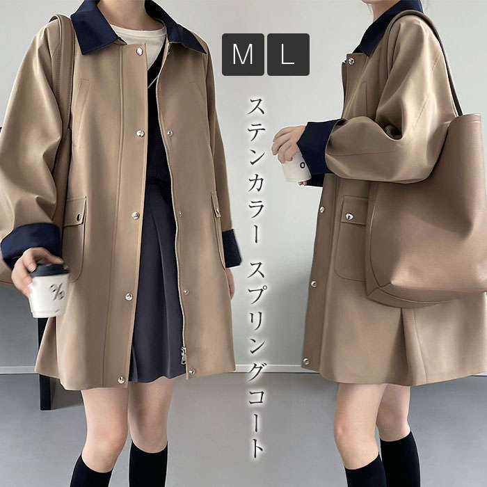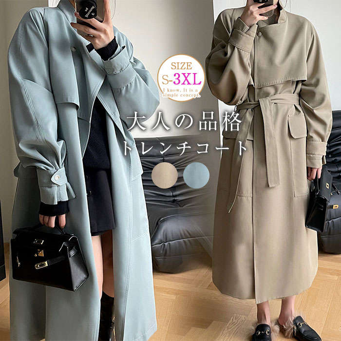 アウター トレディース 春 秋 ステンカラー レンチコート スプリングコート コート ロング丈 ジャケット 羽織り ジャケット 大きいサイズ 上着 コート ロング丈 ロングコート 無地