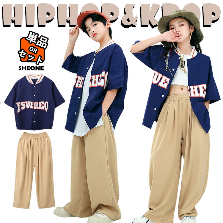 紺色 ベースボールシャツ 半袖 夏 キッズ ダンス衣装 男の子 女の子 トップス パンツ セットアップ かっこいい カジュアル スウェットパンツ ダンスウェア ヒップホップ ジャズダン