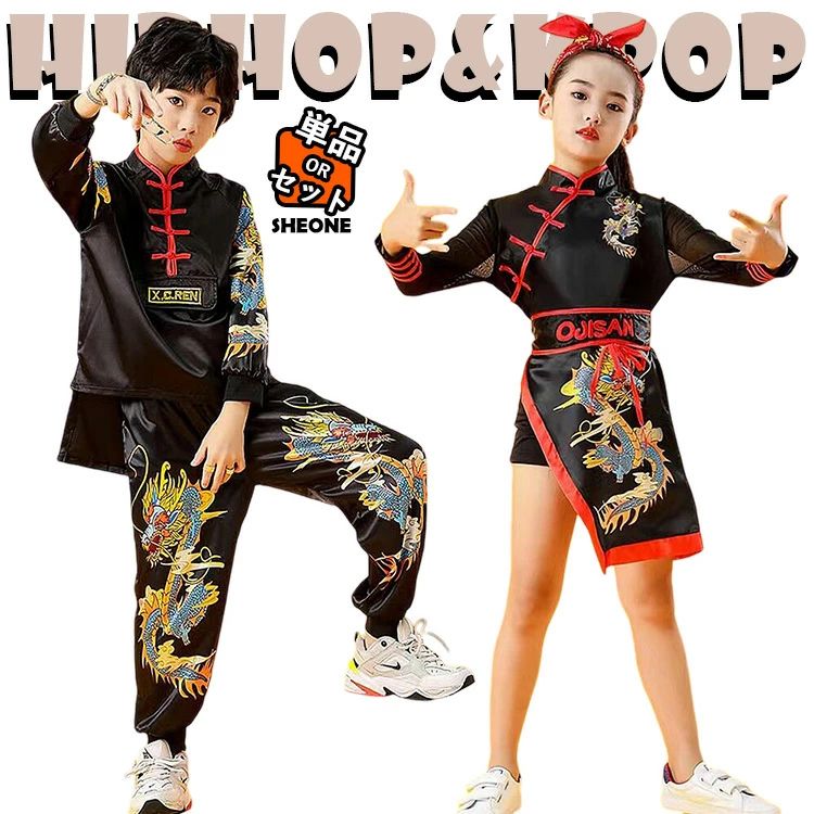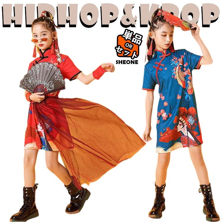 チャイナドレス チャイナ風 チーパオ キッズ ダンス 衣装 派手 ダンス衣装 トップス へそ出し 女の子 子供服 演出服 キッズダンス 上下セット ガールズ ヒップホップ キッズ チャイ