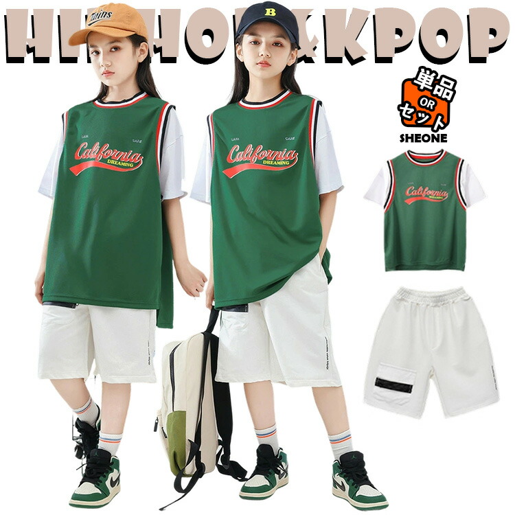 緑 半袖 夏 キッズ ダンス衣装 男の子 女の子 トップス パンツ セットアップ ショートパンツ かっこいい カジュアル シャツ カジュアルシャツ ダンスウェア ヒップホップ ジャズダ
