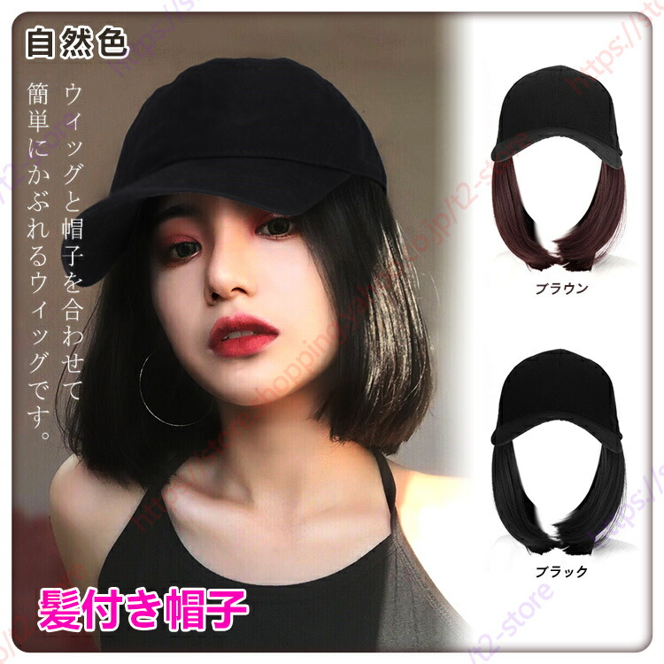 帽子付きウィッグ 帽子ウィッグ キャップウィッグ 髪付き帽子 レディース かつら ストレート ショート ボブ イメチェン ガーリー