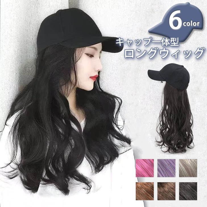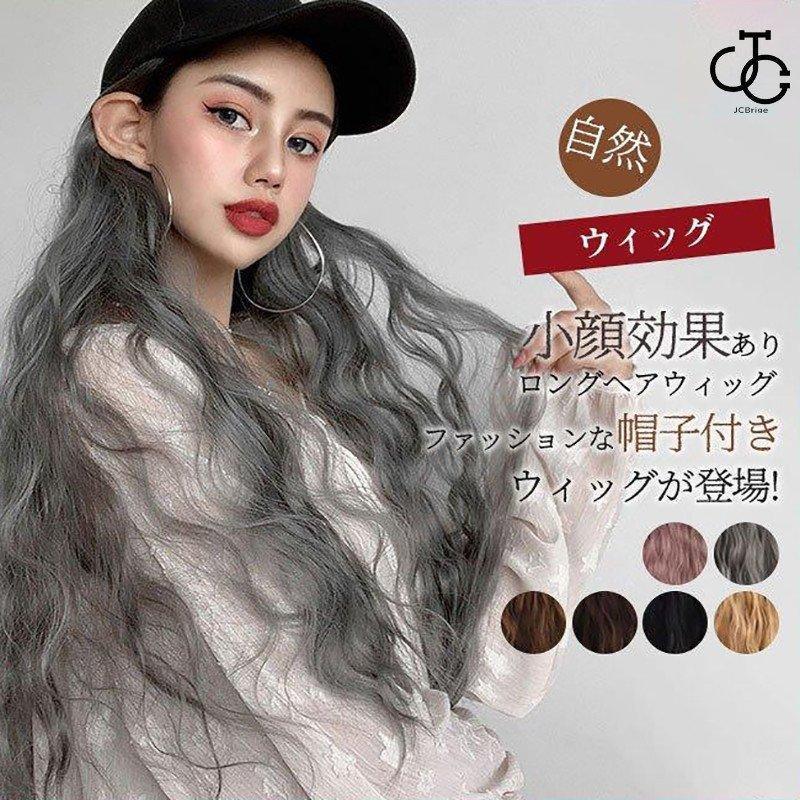 帽子付きウィッグ レディース かつら ウィッグ付き帽子 キャップ 帽子 自然 ロングウィッグ かつら エクステ 耐熱 カール 変装 おしゃれ