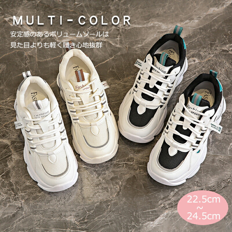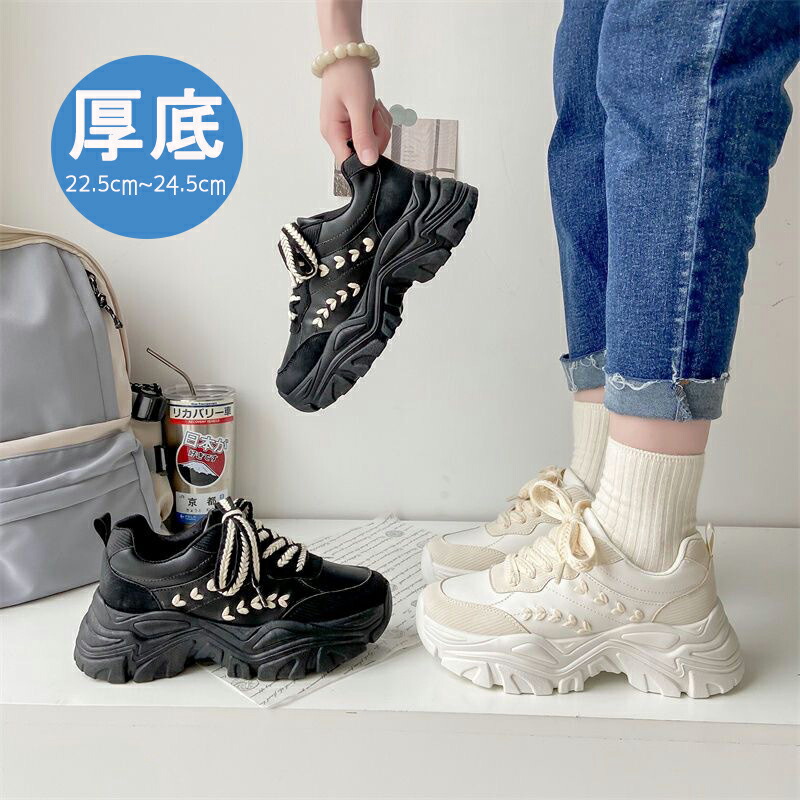 ダッドスニーカー 厚底 レディース 韓国 ボリュームスニーカー 黒 レースアップ 歩きやすいシューズ インヒール 美脚脚長 フラットシューズ カジュアル厚底靴