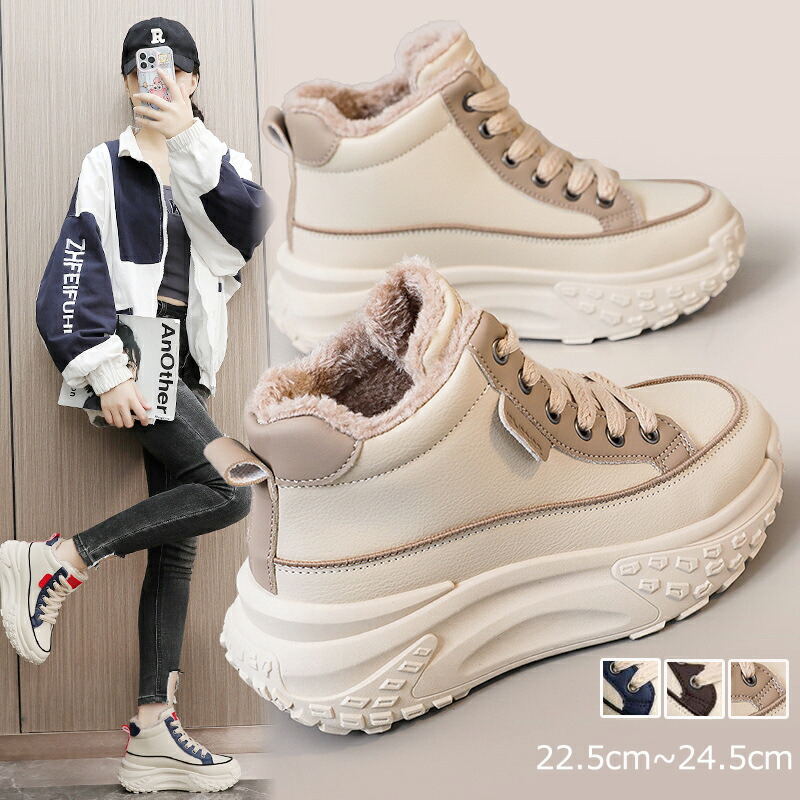 裏起毛 厚底スニーカー ハイカット韓国風 レディース レースアップスニーカー 美脚脚長 歩きやすいシューズ 疲れない ボリュームソール 秋冬 おしゃれ 暖か厚底靴
