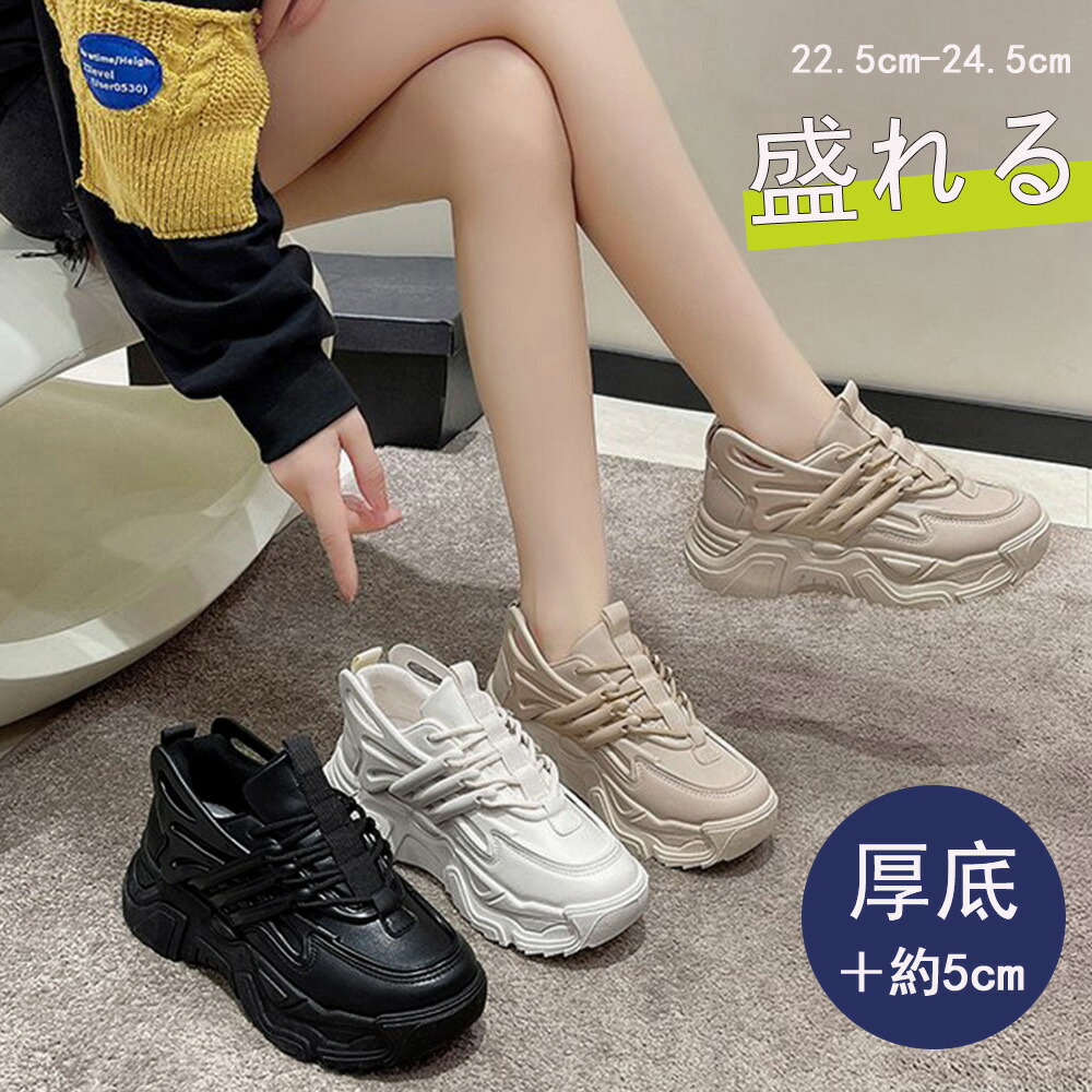 厚底ダッドスニーカー レースアップ 韓国 ボリュームスニーカー カッコイイ ガーリー 疲れにくいシューズ 滑りにくい ウォーキングシューズ 履きやすいスポーツくつ