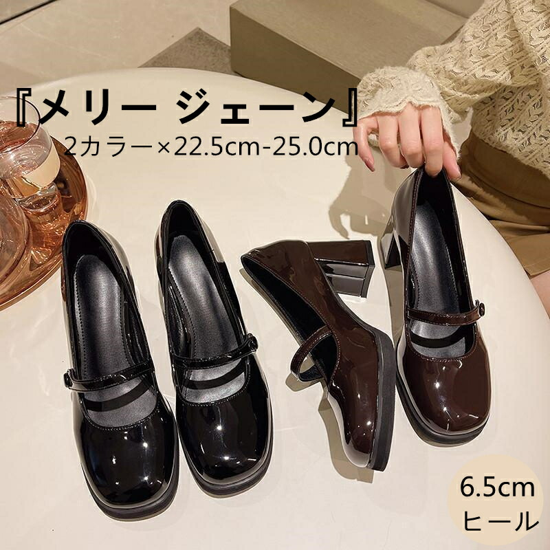 パンプス 太めヒール メリージェーン スクエアトゥ ストラップ付き シンプル ハイヒール おしゃれ 可愛い 大人 カジュアル 歩きやすい 履きやすい 美脚 黒