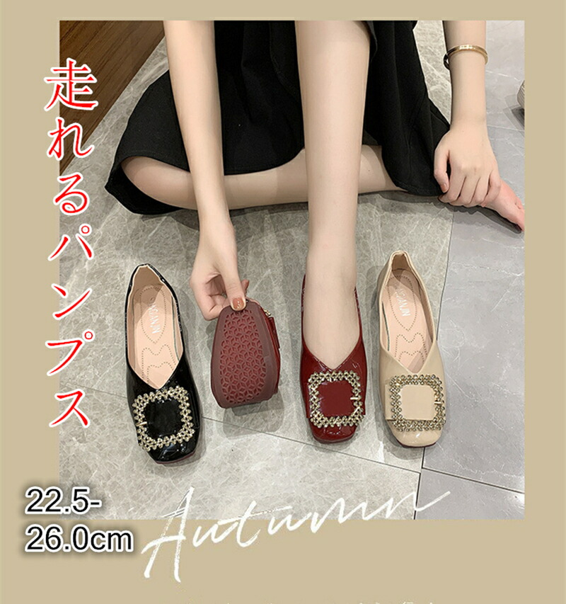 フラットシューズ Vカット スクエアトゥ パンプス 走れるパンプス ぺたんこ ローヒール 柔らか 歩きやすい レディース ヒール3cm 痛くない 通勤