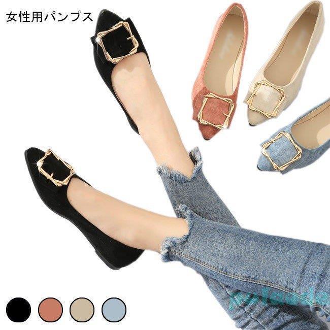 パンプス レディース ローカット シューズ ポインテッドトゥ ぺったんこ 女性用 靴 ローヒール 春夏物 通勤 くつ 可愛い オシャレ
