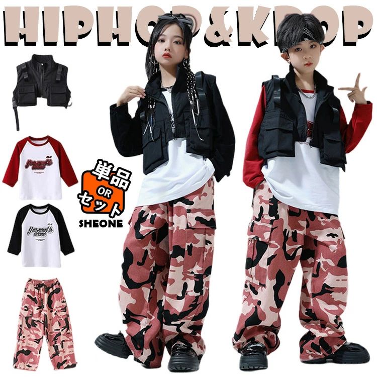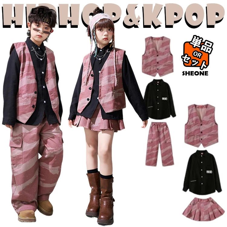 ピンクキッズ ダンス衣装 キッズダンス セットアップ 女の子 男の子パンツトップス ベスト スカート シャツ カジュアル 子供 ストリート ダンスウェア ヒップホップ ジャズダンス ポ