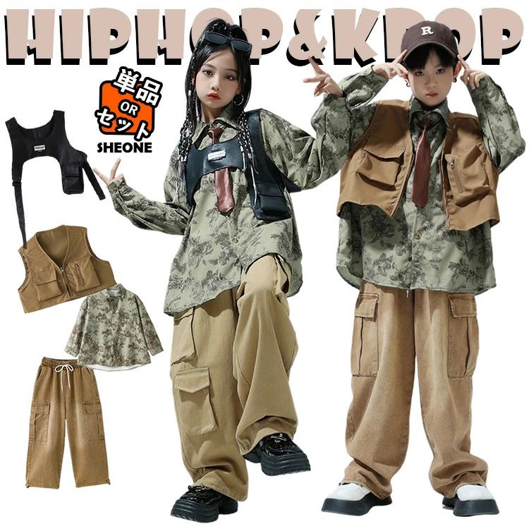 柄シャツ ベスト キッズ ダンス衣装 男の子 女の子 個性派 かっこいい セットアップ パンツ トップス 子供 ストリート ダンスウェア ヒップホップ ジャズダンス ポッピング 韓国 演出