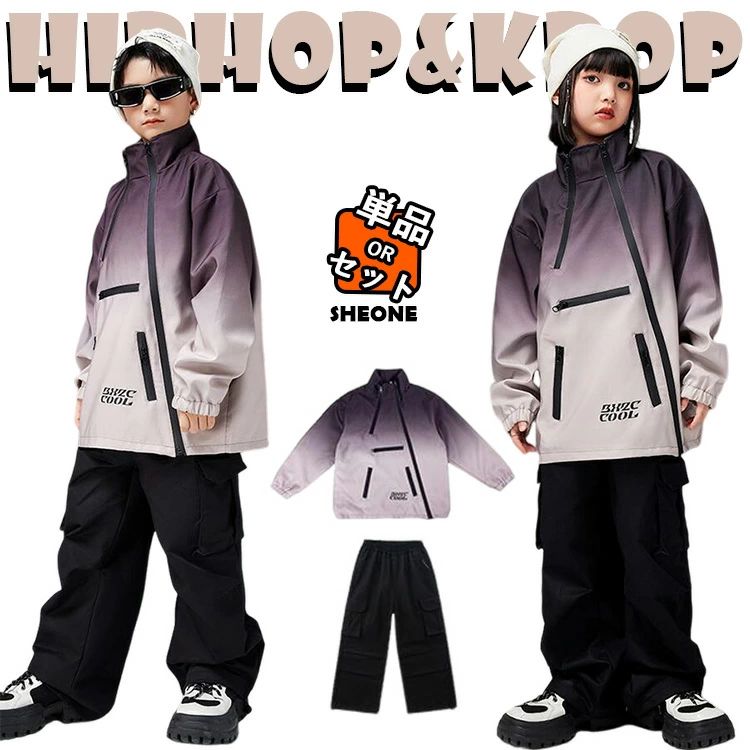 紫 グラデーションジャケット キッズ ダンス衣装 セットアップ 女の子 男の子 パンツ トップス シャツ カジュアル 子供 ストリート ダンスウェア ヒップホップ ジャズダンス ポッピン
