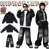 革 ジャケット デニムパンツ 個性派 キッズ ダンス衣装 男の子 女の子 かっこいい セットアップ パンツ トップス カジュアル 子供 ストリート ダンスウェア ヒップホップ ジ