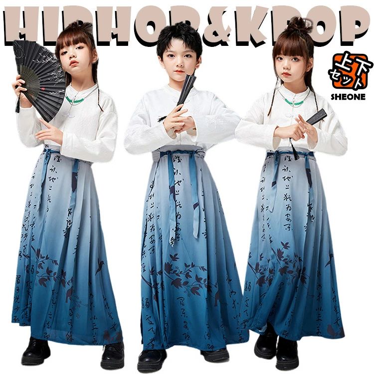 水墨 中華風 キッズ ダンス衣装 男の子 女の子 中国風 チャイナ風 漢字柄 チャイナボタン シャツ セットアップ カジュアル 子供 かっこいい 個性派 ストリート ダンスウェア ヒップホ