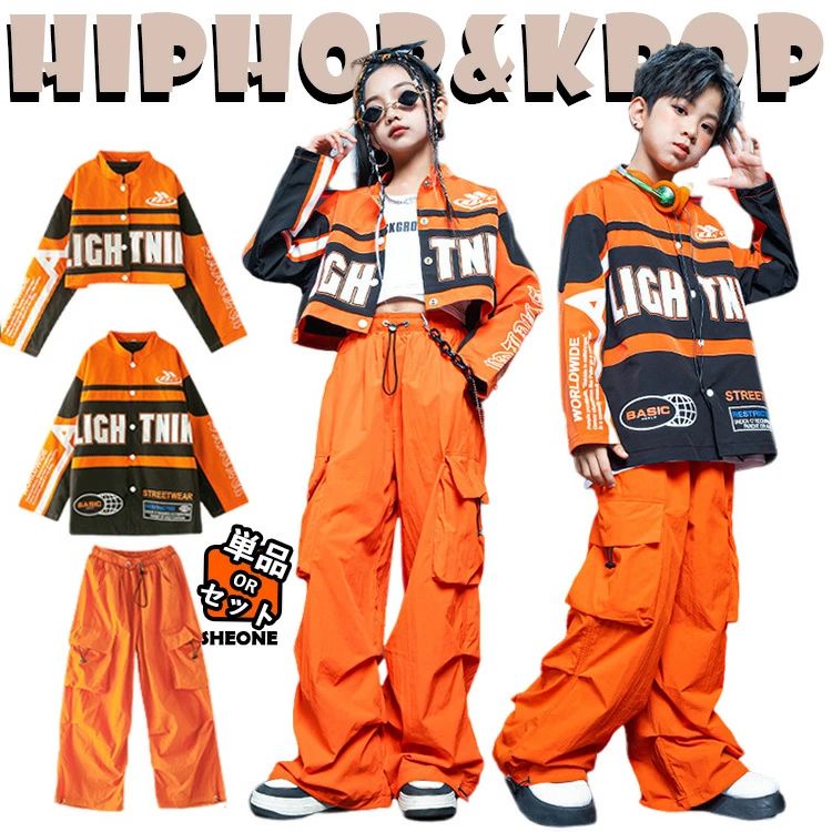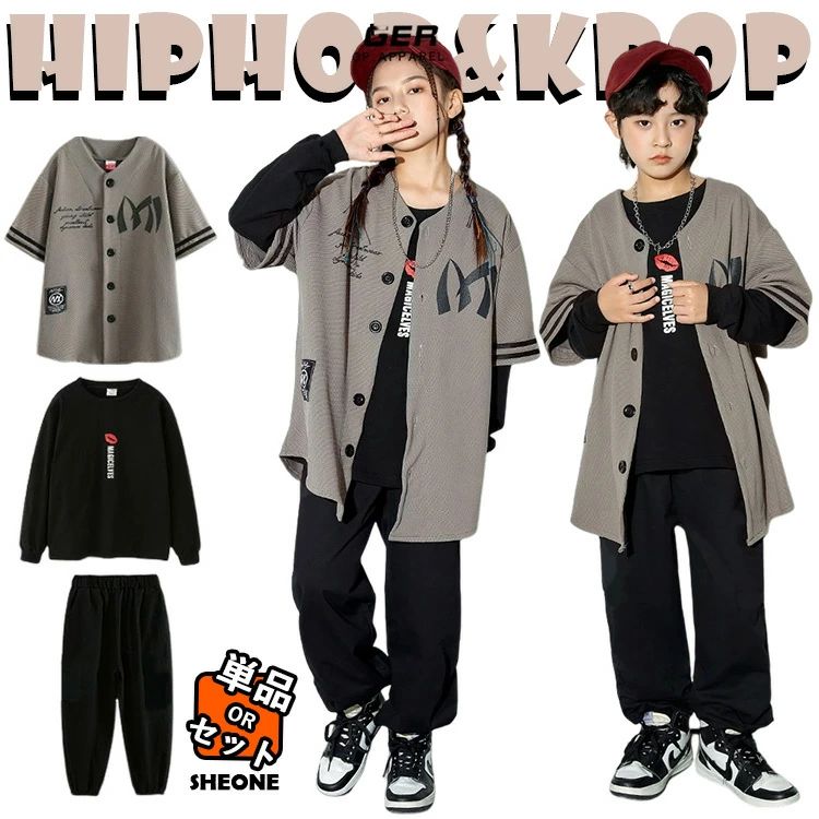 ベースボールシャツ キッズ ダンス衣装 セットアップ 男の子 女の子 トップス パンツ トレーナー 野球 服 ダンスウェアロックダンス ヒップホップ ジャズダンス ポッピング 韓国 -