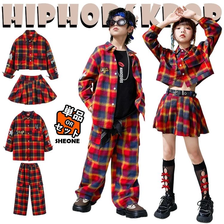 赤 タータンチェック レッド キッズ ダンス衣装 セットアップ 男の子 女の子 タンクトップ トップス パンツ スカート ダンスウェアロックダンス ヒップホップ ジャズダンス ポッピン