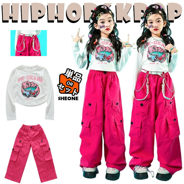 キッズ ダンス 衣装 セットアップ おしゃれ かっこいい かわいい 女の子 ガールズ ゆったり トップス パンツ ベルト ホワイト ピンク ジャズダンス ヒップホップ 派手 韓国 レッ