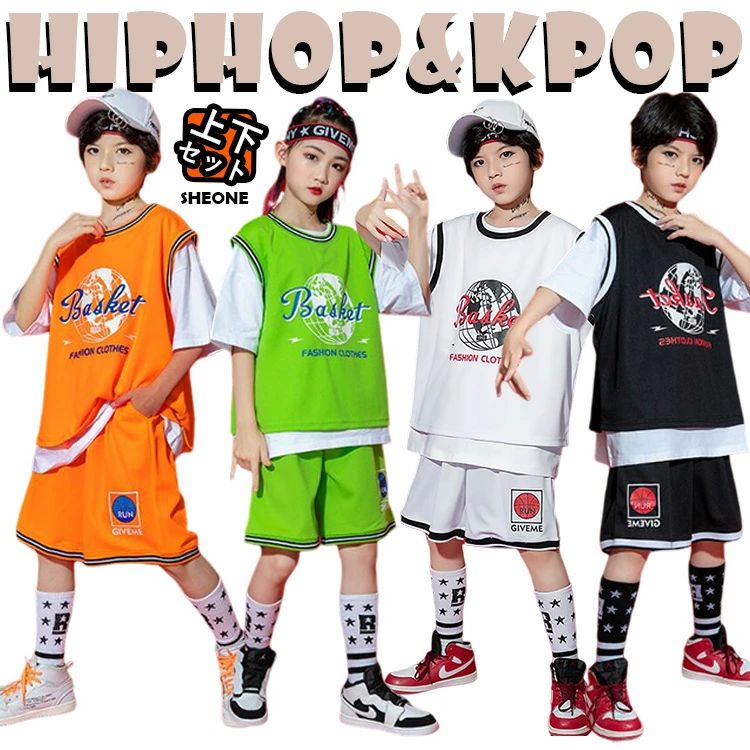 紫 橙 白 黒 バスケット タンクトップ キッズ ダンス衣装 セットアップ男の子 女の子 かっこいい パケット ガールズ ボーイズ チーム ユニフォーム チアガール 夏 ベスト ゼッケン風