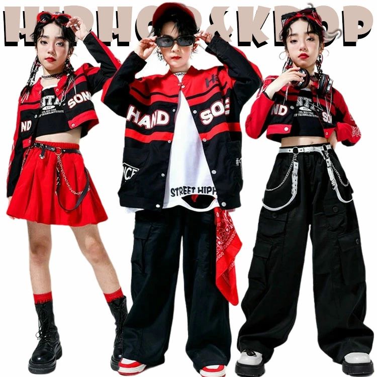 赤 レーシングスーツ キッズダンス衣装 セットアップ かっこいい ジャケット 女の子 男の子 おしゃれ スタジャン ショート へそ出し トップス ダボパン カーゴパンツ ジャズダンス ヒ