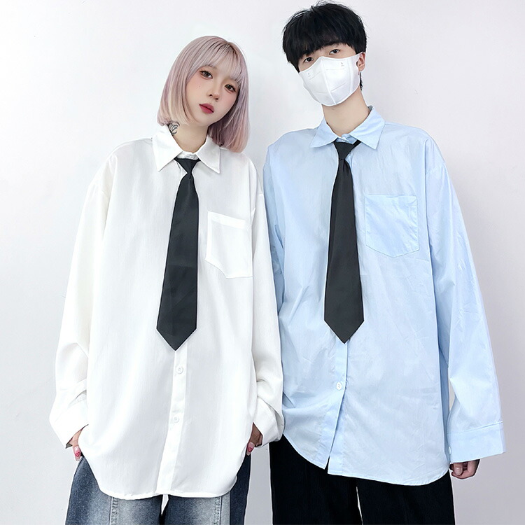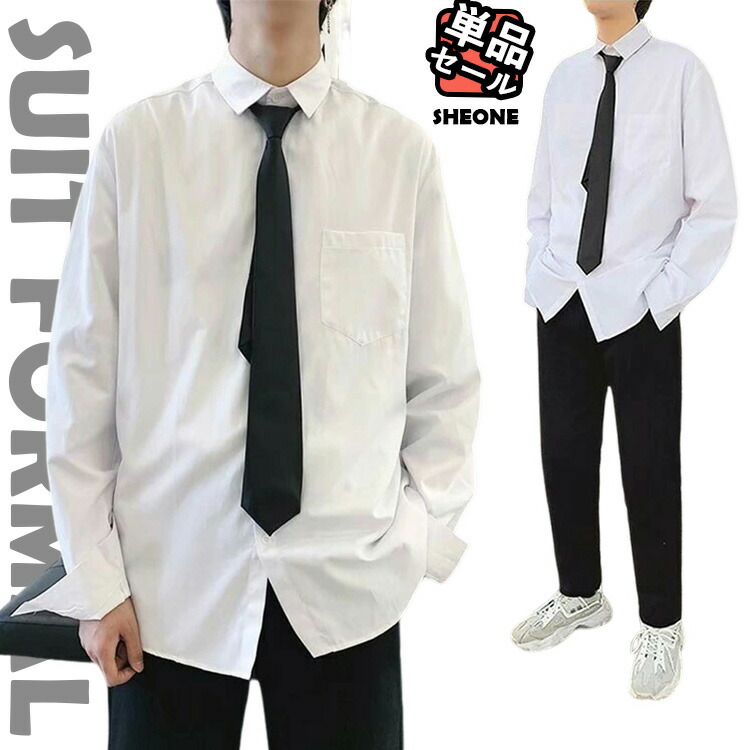 卒業式 ブラウス メンズ ダンス 衣装 韓国 トップス - 白 シャツ ネクタイ 白 長袖 黒 韓国 ダンス衣装 ネクタイおまけ おしゃれ ゆめかわいい 個性的 ヒップホップ か